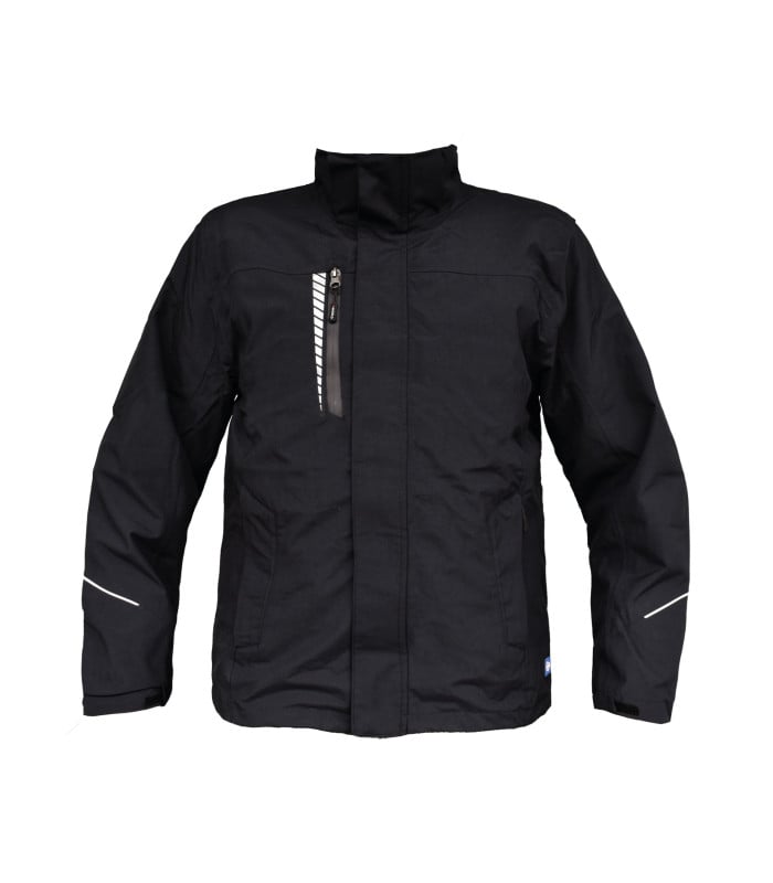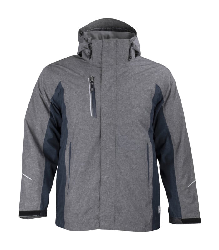 Diseño 3 en 1 con parka interior desmontable. Cierre frontal con tapacierre y velcros interiores. Costuras completamente selladas. Bolsillo en pecho con cierre impermeable Bolsillos inferiores con cierre oculto Sistema de ventilación bajo los brazos. Detalles reflectivos en mangas y espalda. Mangas con ajuste mediante velcro. Gorro desmontable con cierre. Parka interior con forro térmico reflectante.