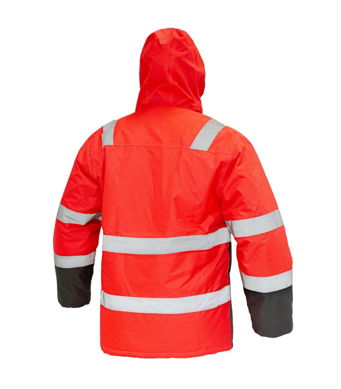 Parka térmica alta visibilidad Clase 2, impermeable y sellada, con cintas reflectivas, abrigo eficiente y protección integral en condiciones exigentes.