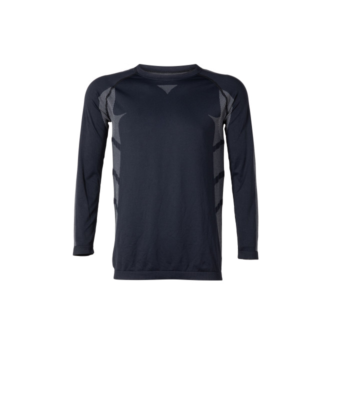 La primera capa cuenta con un tipo de tejido de última generación, el que casi no tiene costuras, es liviana, abrigadora, respirable y de secado rápido. La estructura inteligente de los hilos alejan la humedad de la piel hacia las capas exteriores de la ropa y garantizan una excelente libertad de movimiento y elasticidad.